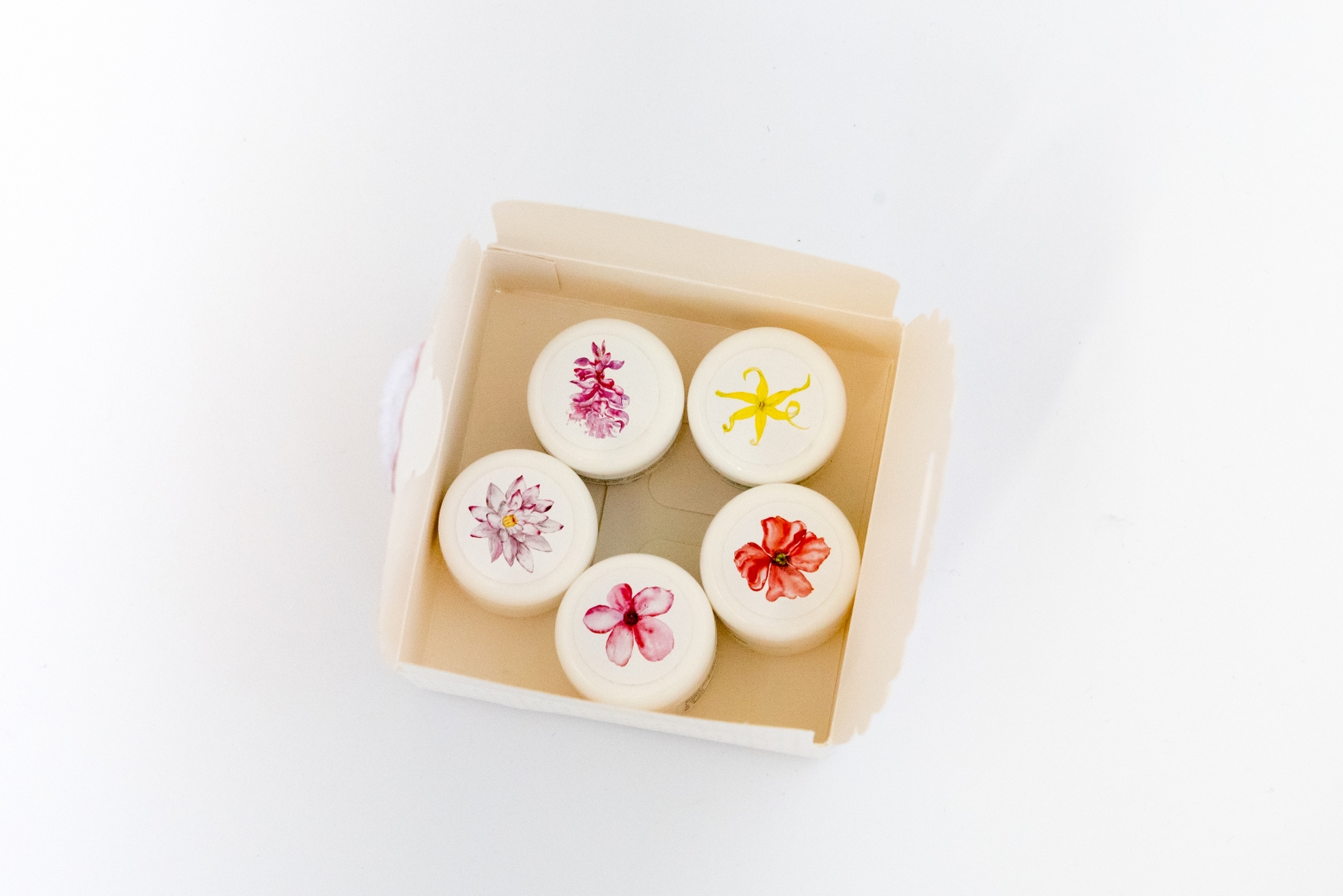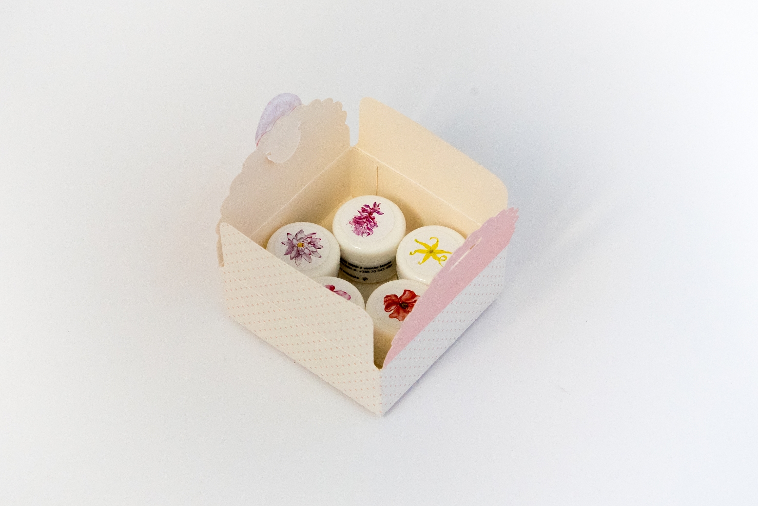 Komplet 5 mini kremic za nego različnih tipov kože. Komplet vsebuje 5 kremic po 5 mL, torej skupaj 25 mL vsebine.